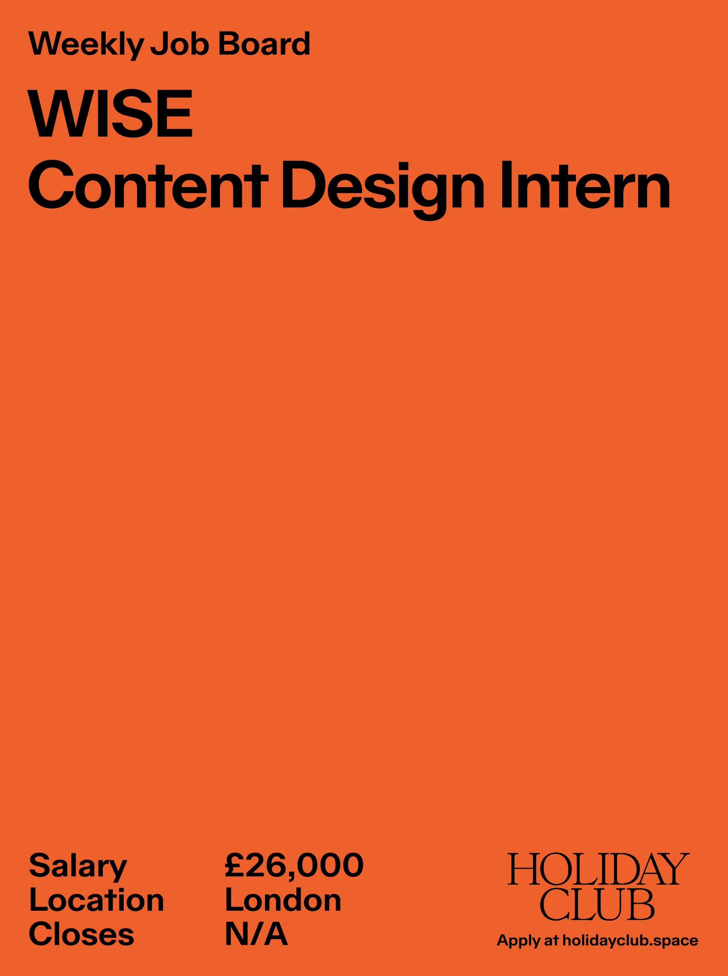 Wise is hiring for a content design intern, from the internship you’ll join their Design team in the summer. The internship will be for 10 weeks in the summer (23rd June - 29th August 2025). You’ll be onboarded with the global internship cohort in one of Wise’s offices and learn the basics of being a Wiser.